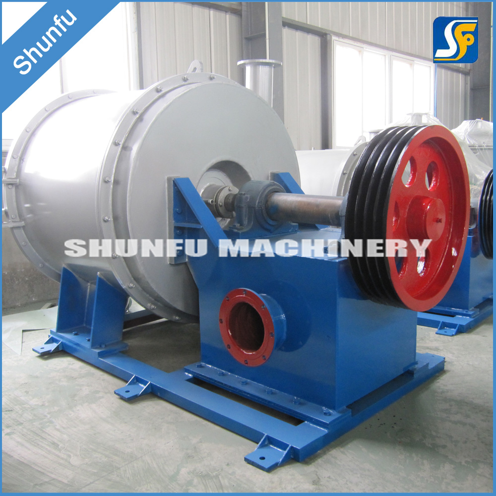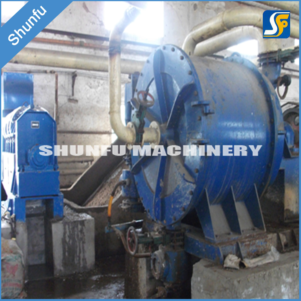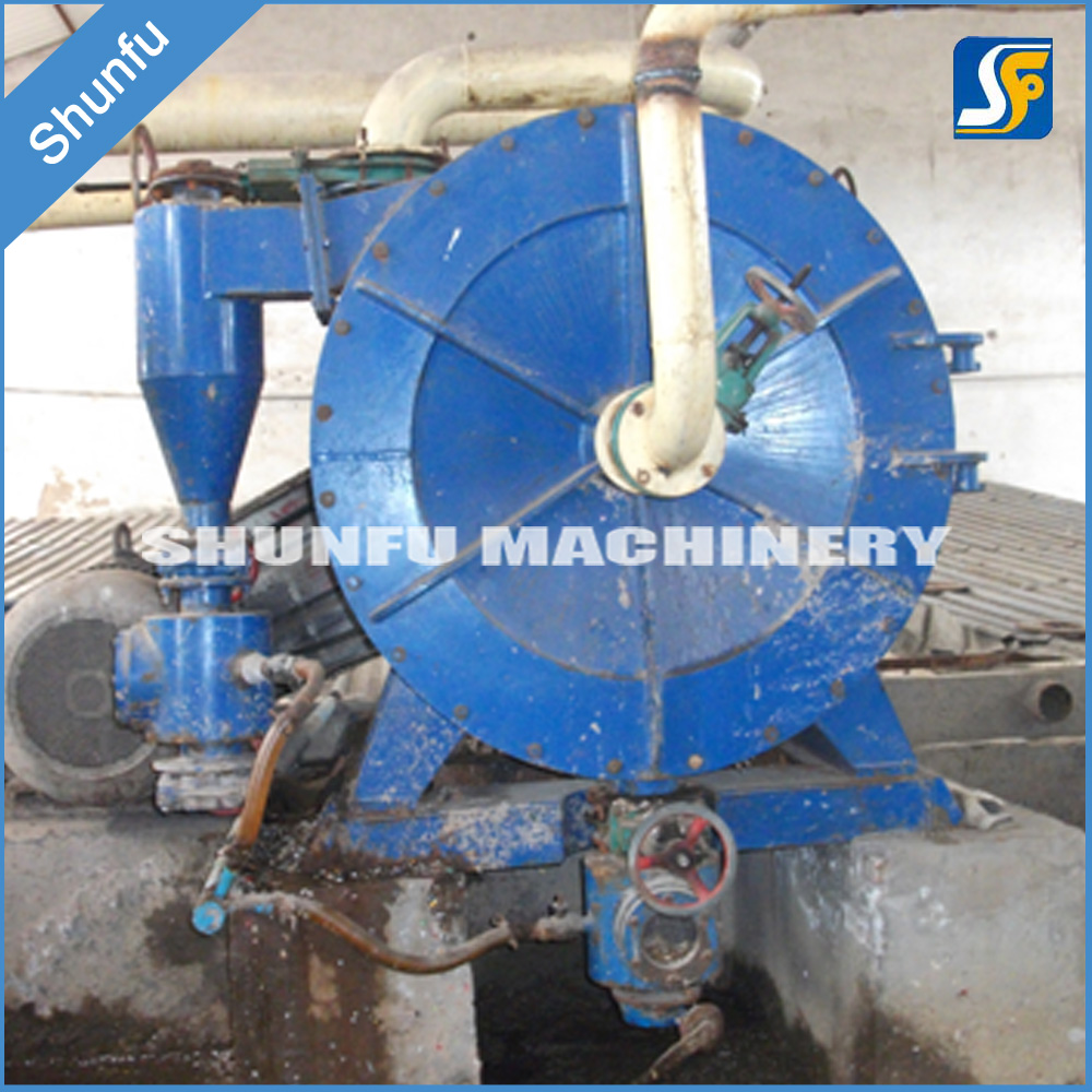 筒體采用耐磨性及耐壓性設(shè)計(jì)標(biāo)準(zhǔn),材質(zhì)為不銹鋼或碳鋼。漿料由入口沿切線方向進(jìn)入筒體,經(jīng)轉(zhuǎn)子高速旋轉(zhuǎn)產(chǎn)生的離心力碎解原料,并將輕重雜質(zhì)分離,輕雜質(zhì)由筒體壓蓋中央排出,重雜質(zhì)由于離心力的原理,沿筒體切線方向進(jìn)入砂罐排出。